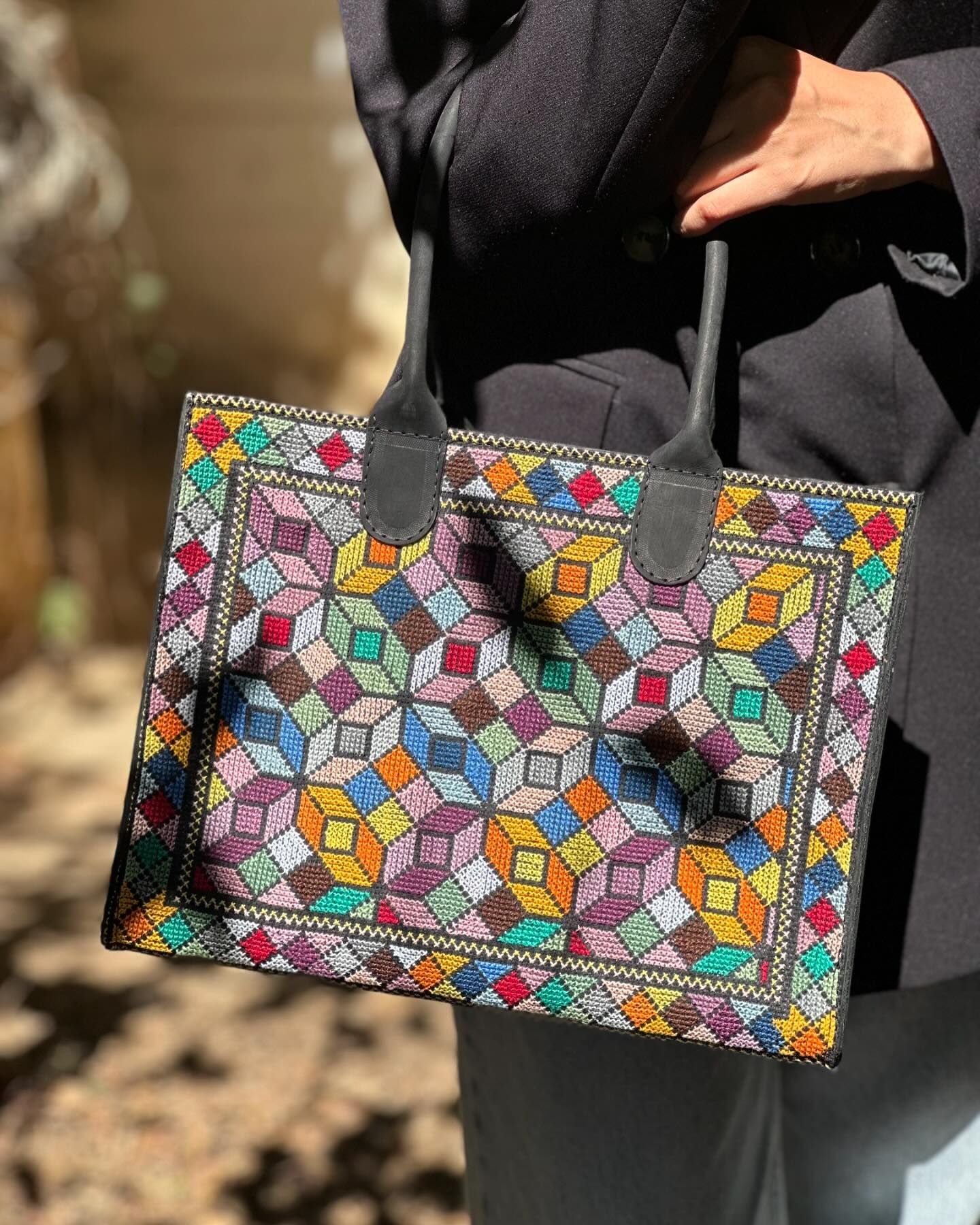 شنطة جلد ستاتي تطريز يدوي
