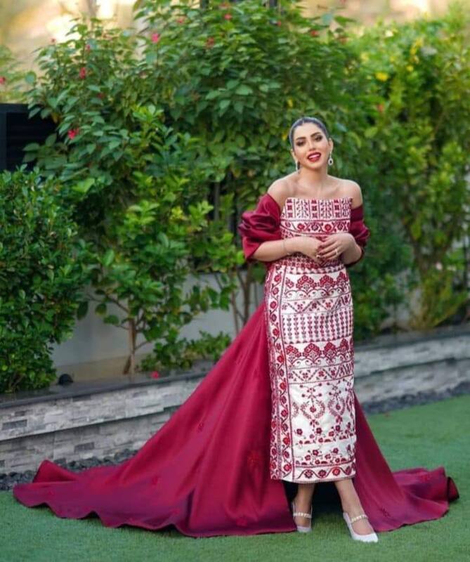 elegant Bayyouna embroidered dress. With exquisite detailing and craftsmanship, this dress is truly a work of art. Stand out in any occasion with its unique design and feel confident and beautiful. Elevate your wardrobe and embrace the beauty and charm of the Bayyouna dre
